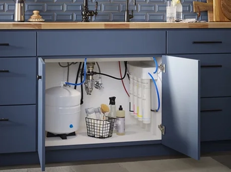 Our under-sink water filtration systems are mounted beneath your kitchen or bathroom sink. It solely purifies the water that flows out of that designated faucet. This type of water purification involves minimal plumbing and is more cost-effective than a comprehensive whole home system.